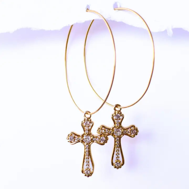 rounded cross, large gold hoops