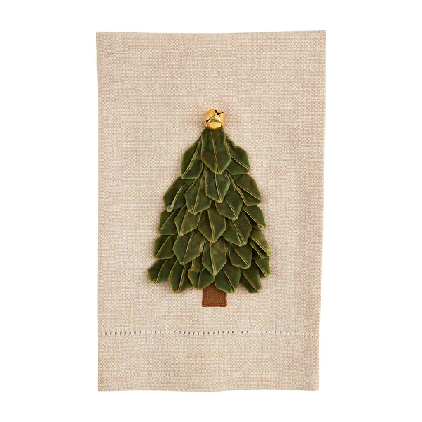 Mudpie Hand Towel Dark Green Velvet Christmas Tree